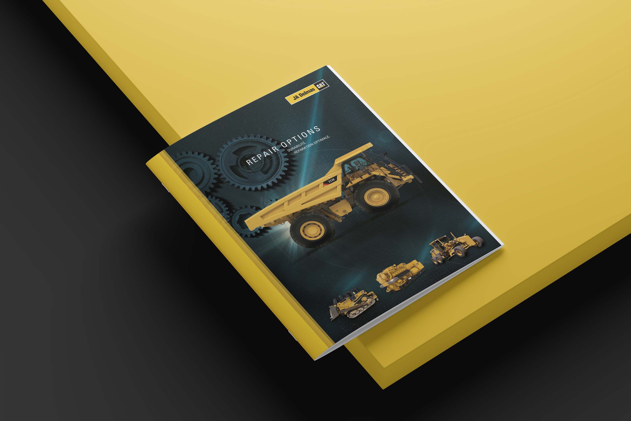 Bleu de Minuit accompagne JA Delmas-Caterpillar dans la conception et la production de supports de communication professionnels, à la fois techniques, commerciaux et institutionnels. Nous réalisons des catalogues spécialisés (pièces, services, formation, maintenance prédictive), des brochures thématiques, ainsi que des outils destinés à l’avant-vente et à la relation client.