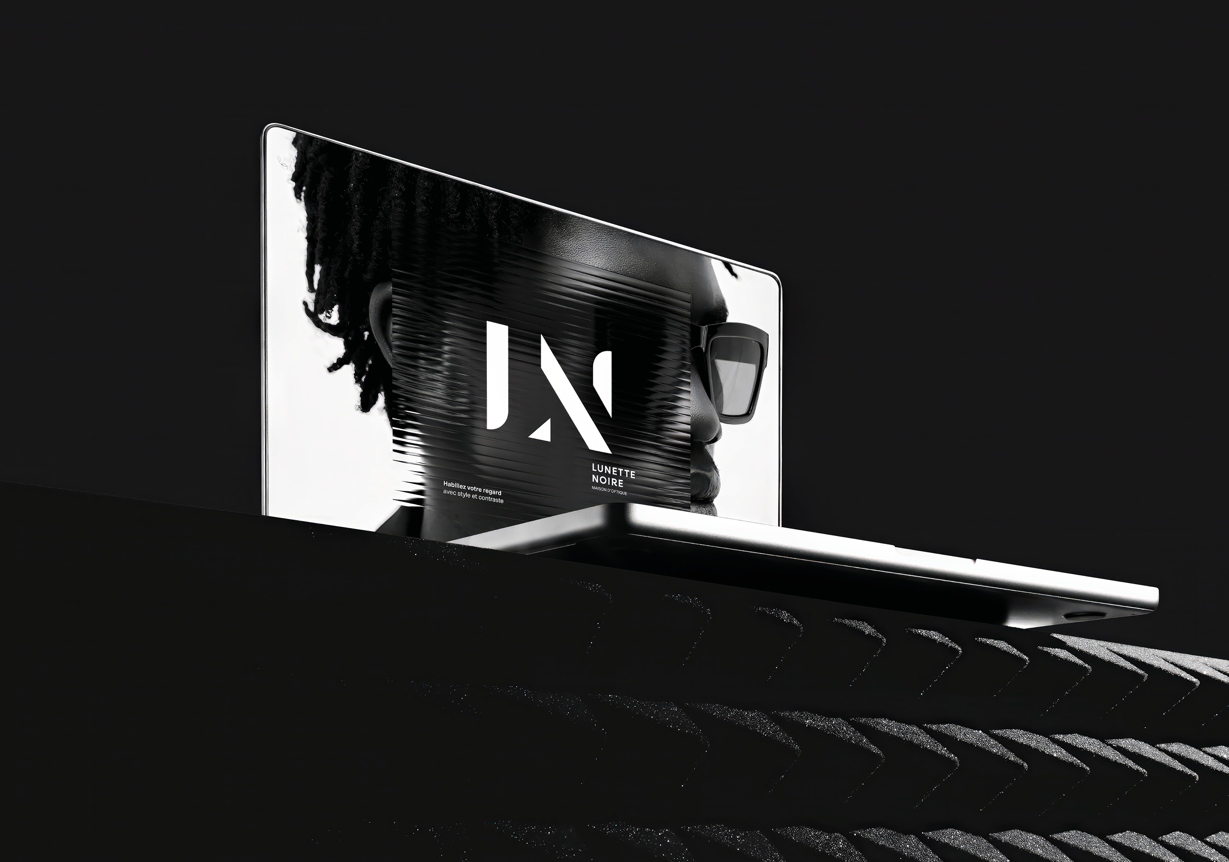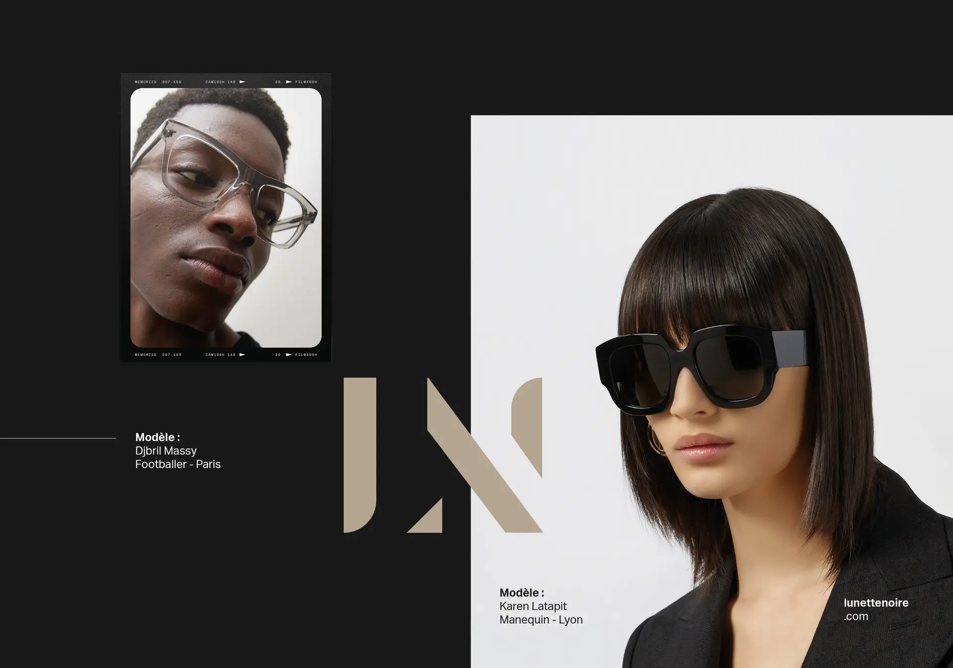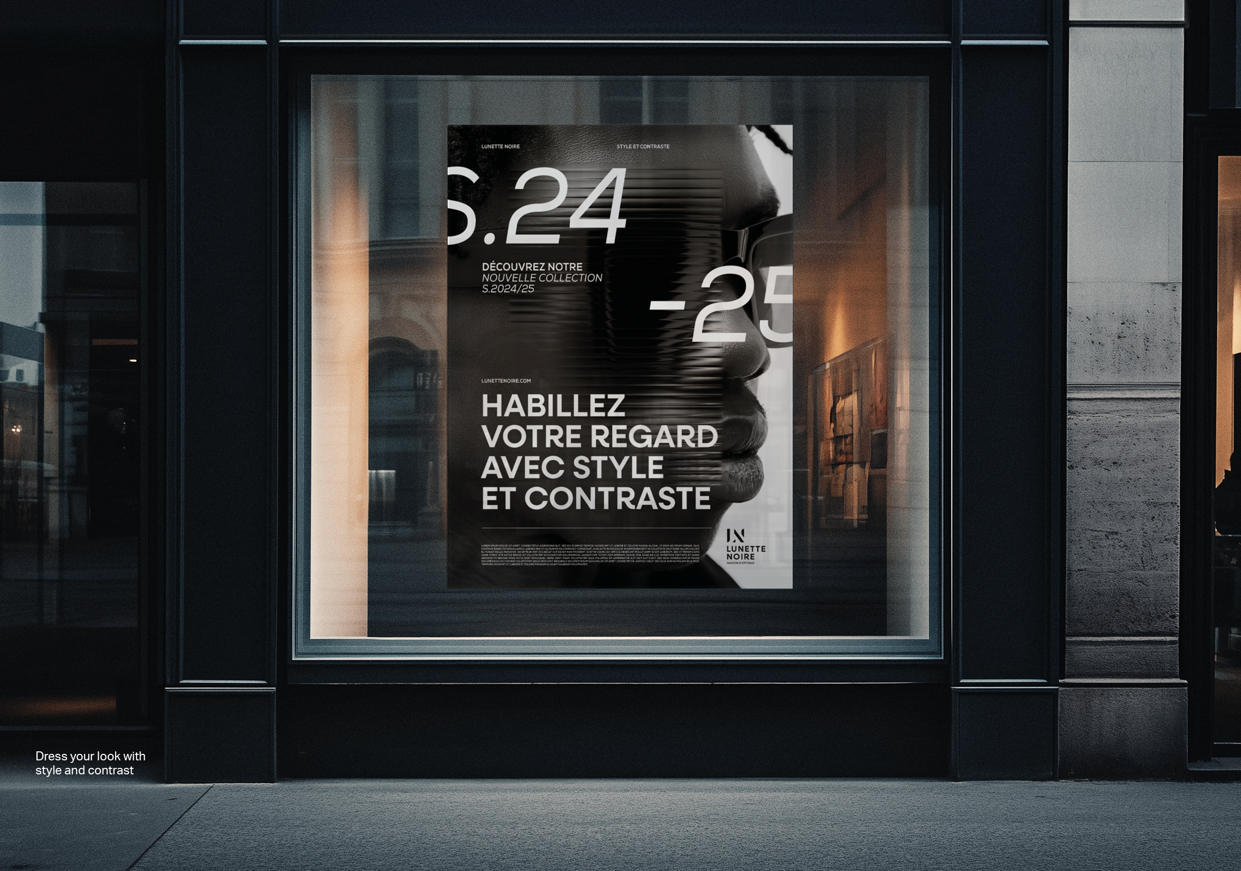 Pour la communication grand public, Bleu de Minuit a imaginé des visuels aux compositions originales, jouant avec les codes du graphisme, de la photographie d’objet et de l’affiche culturelle. Chaque visuel est pensé comme une micro-narration visuelle, où les lunettes deviennent prétexte à une mise en scène conceptuelle, parfois décalée, toujours précise. Ce parti pris affirmé permet à Lunettes Noires de se démarquer dans l’espace urbain, en cultivant une esthétique forte et identifiable, à la frontière entre design, art visuel et communication commerciale.
