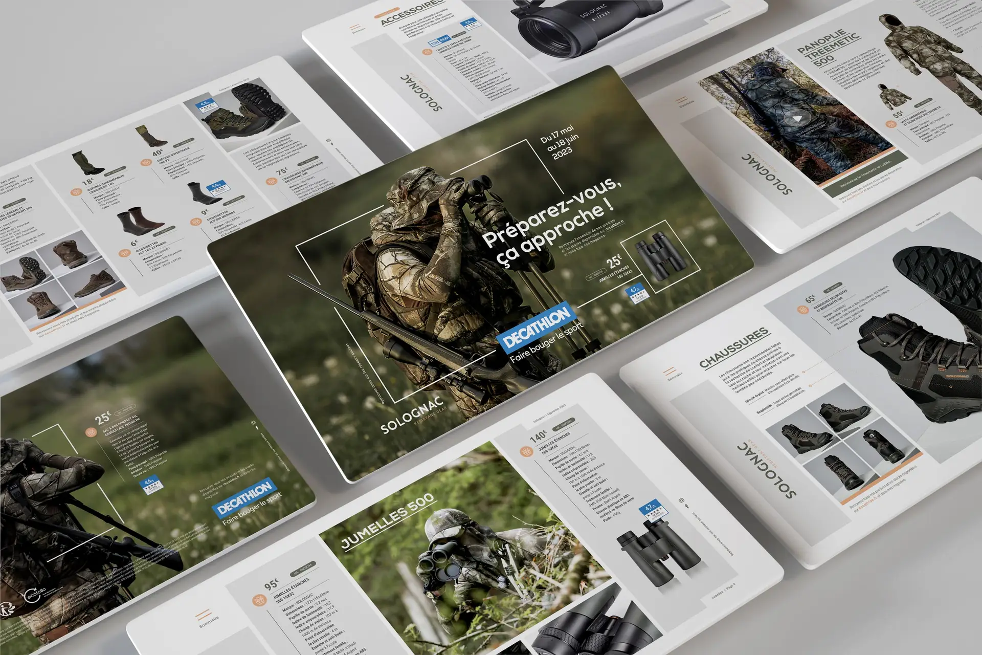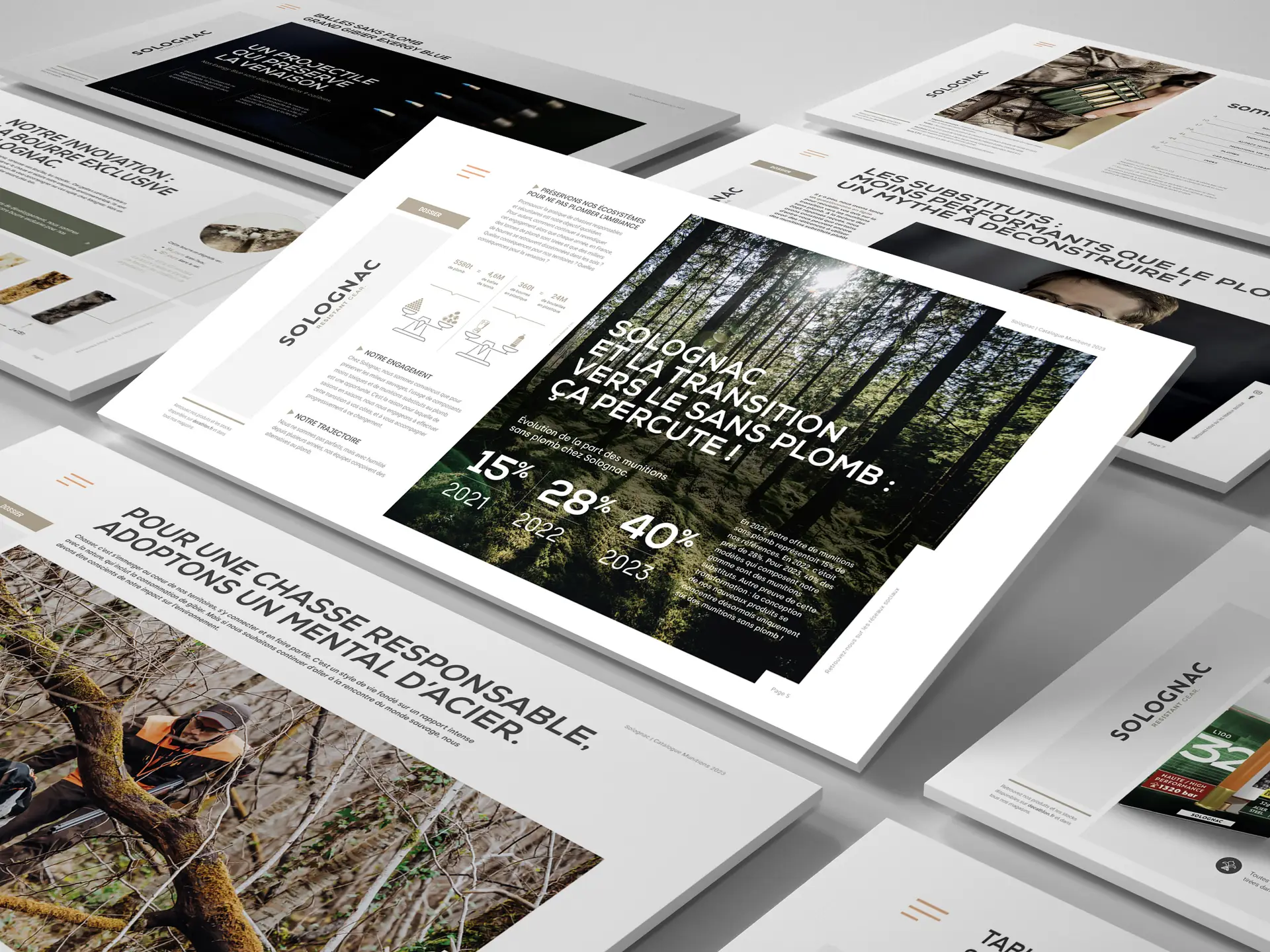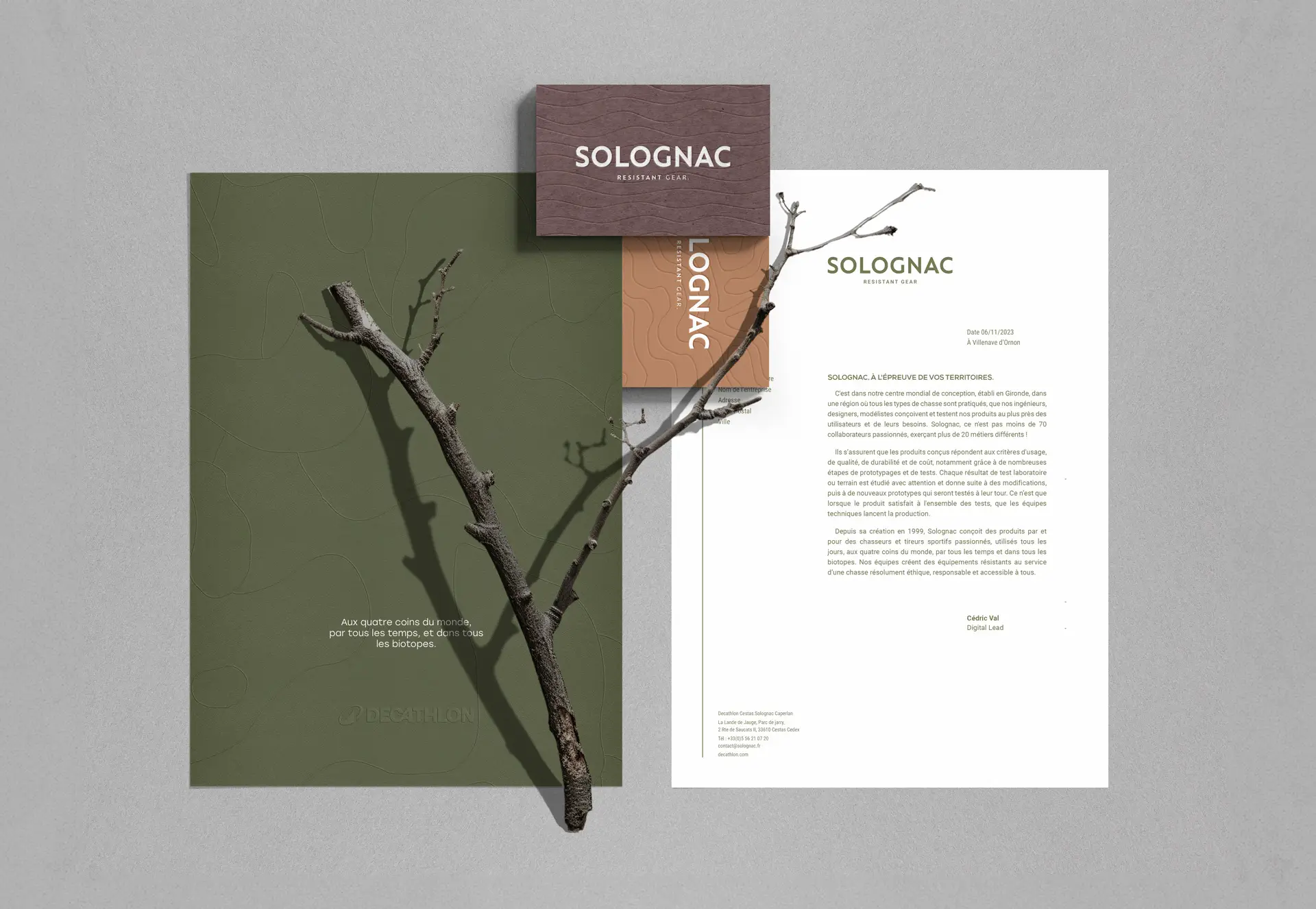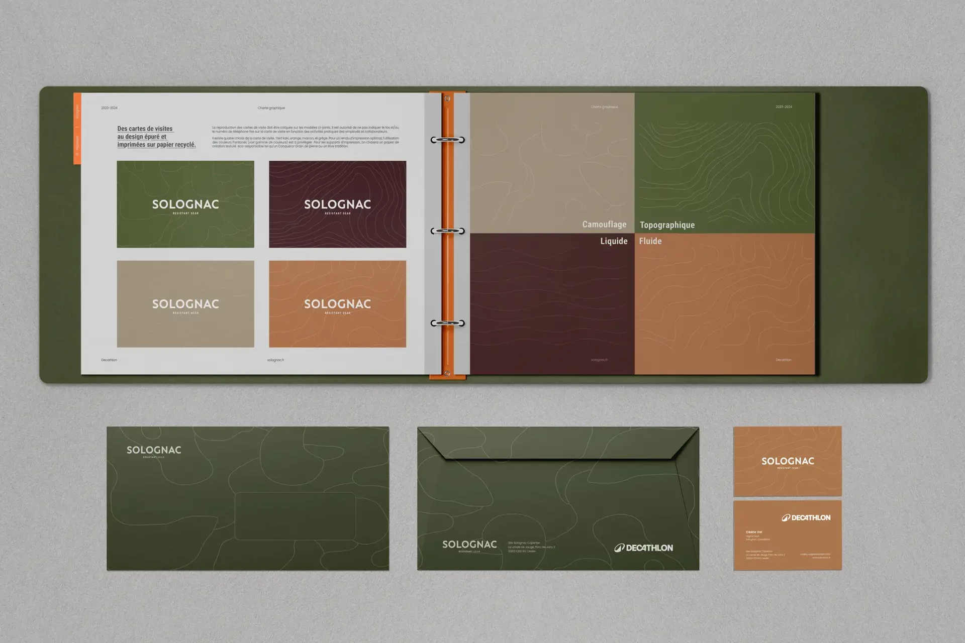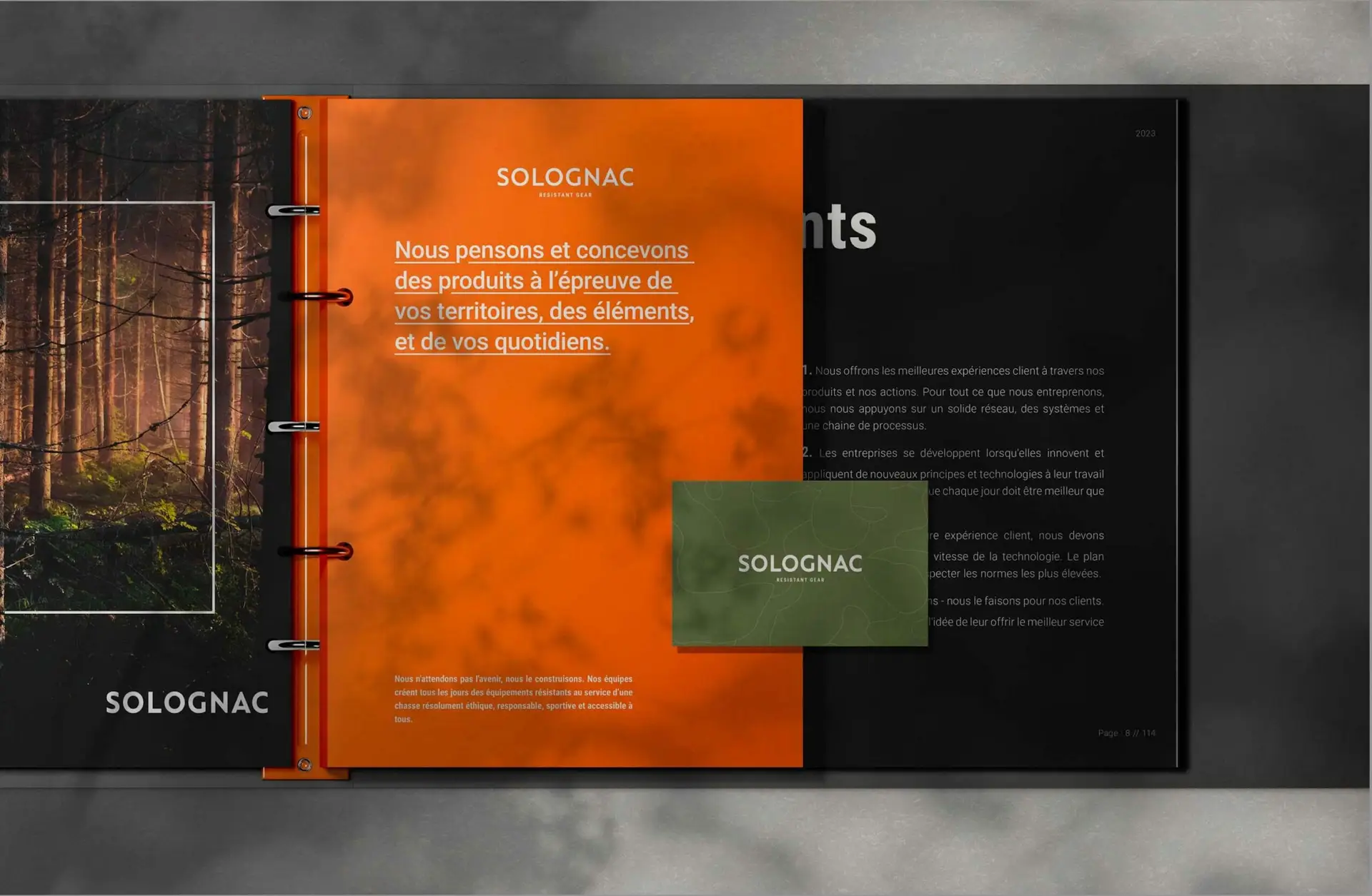 Bleu de Minuit a été sollicité pour repenser l’identité graphique de Solognac autour du logo existant, dans une logique d’évolution et de clarification de son positionnement. L’enjeu : faire émerger une image plus lisible, plus sobre, et en accord avec l’engagement de la marque en faveur d’une pratique responsable de la nature. La nouvelle charte repose sur des codes graphiques épurés, un univers coloriel plus maîtrisé et un système typographique robuste, capable de s’adapter à une grande diversité de supports tout en restant immédiatement identifiable. Cette refonte vise à renforcer la cohérence de la marque sur l’ensemble de ses prises de parole, qu’elles soient techniques, institutionnelles ou commerciales.